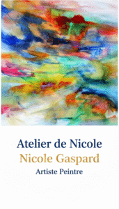 Je puise mon inspiration au plus profond de mes émotions Je m’échappe des référents figuratifs Je transpose la couleur, la lumière, le souffle et l’énergie vitale des forces naturelles, où s’inscrivent l’espoir et le rêve Et si par bonheur, le regardeur est ému et voyage dans mes tableaux, il a touché mon âme Une œuvre ne vit que si on la regarde, c’est pourquoi j’expose dans plusieurs manifestations artistiques J’ai le plaisir d’enseigner mon art pour transmettre ma passion Je puise mon inspiration au plus profond de mes émotions Je m’échappe des référents figuratifs Je transpose la couleur, la lumière, le souffle et l’énergie vitale des forces naturelles, où s’inscrivent l’espoir et le rêve NICOLE GASPARD Artiste peintre Découvrir la Galerie Les cours de peinture Rencontrer l'artiste